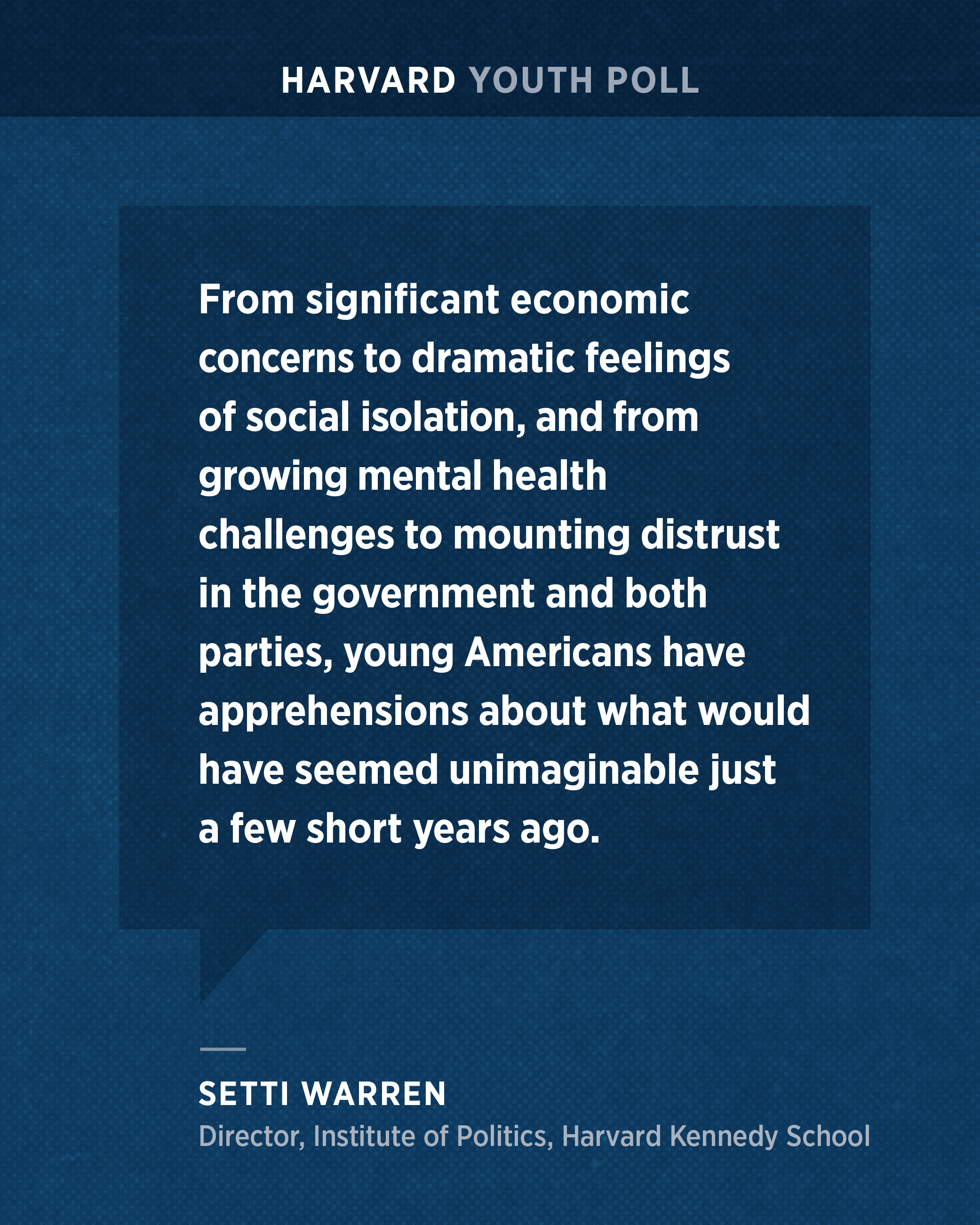Design and animation of key takeaways for the 50th anniversary of the Harvard Youth Poll, conducted semianually by the Harvard Kennedy School’s Institue of Politics.